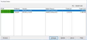 To add a part to an existing PO (so all parts can be received on the same invoice) Click on the part (The part must be red or Not Ordered) then click Add to PO.