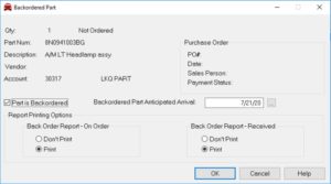 Check the Part is Backordered box and enter the anticipated arrival date (If known) then click OK.