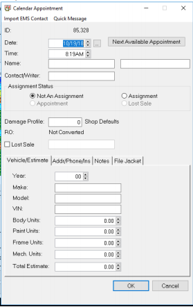 4.) Fill out the Calendar Appointment by manually adding the customer information or selecting “Import EMS Contact”.