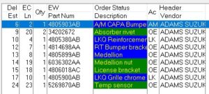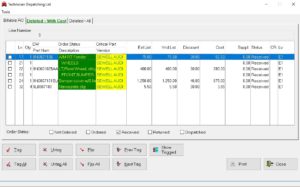ONCE THE DISPATCH LIST IS PRINTED, THE SCREEN WILL GO BACK TO THE PARTS LIST. THOSE PARTS DISPATCHED WILL TURN FROM GREEN (RECEIVED) TO BLUE (DISPATCHED).