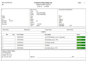 TECH DISPATCHING LIST IS REQUIRED TO MAINTAIN ACCOUNTABILITY AND ACCURACY BETWEEN THE TECHNICIAN AND PARTS DEPARTMENT. IT IS NOW EASIER AND MORE EFFICIENT TO DISPATCH PARTS TO TECHNICIANS ON EVERY JOB.