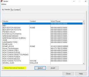 To order parts, highlight a part to order and click the Order button. This will bring up the vendor list.
