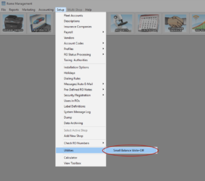 1. Go to Setup –> Utilities –> Small Balance Write off.